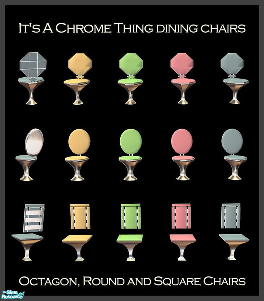 It's a chrome thing these days in the world of kitchen and dining room furnishings. Everybody ALWAYS wants something glossy and shiny! Straight from the backrooms of Matt's Workshop. New mesh is included in the packaged file. Comes complete with four choices of cushion for each chair.