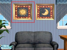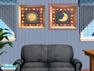 Three pieces from Mary Beth Zietz, one of my favorite artists. The small "sun" and "Moon" paintings can be found under "Handle And Spout" and the larger, two-tile painting is under "In The Beginning", so no EPs are required! As always, game tested and Sim approved. Enjoy!