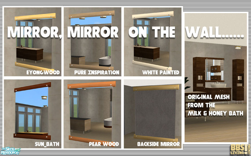 Mirror, Mirror on the wall, is your Sim the prettiest of them all? Recolors of the Milk & Honey mirror. You need that meshfile to make it work. By BetterbeSim. Do not recolor, publish and/or re-distribute without permission.