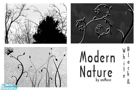 Sims 2 — Modern Nature - Black and White - Wall Art by undefinedmuse — Original designs by myself. Recolor of \"Two
