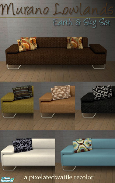 A set of 6 recolors for Murano\'s lowland sofa mesh. Set contains 3 earth tones and 3 clear sky hues.