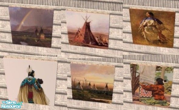 6 painting tahat are inspired by Native American Indians. Found under the pink canvas painting. 1 tiled. Enviroment 10.