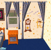 A rich oak bedroom set, with a children's nursery rhyme theme. Collection includes dresser, curtains, bed frame and bedding, and nightstand. Also includes matching fabric for nightstand. Matching wallpaper available soon.