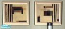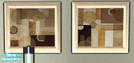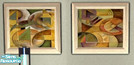 A collection of non-objective abstract art, including a white-wash frame. All pieces replace "Meaning of Fruit" painting.