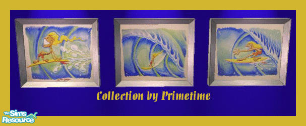 This collection contains 3 prints by artist Drew Brophy. They all feature a boy on a surfboard, catching a wave. They can be found under Handle and Spout in your game.