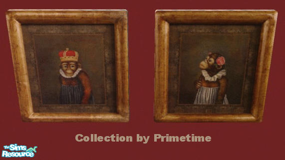 This collection contains 2 prints featuring Royal Monkeys. They can be found under B Stroke in your game and require Nightlife.