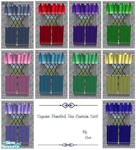 New square paneled tier curtains to spice up your windows. Mesh is included in file.