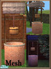 The brick texture comes from Maxis. The shingles texture was provided by Darqstar. The wood textures for the handle, and the posts were gotten here: http://www.washboardabs.net/thief/textures/wood/ and are done by Alun David Bestor. May be recolored at will.