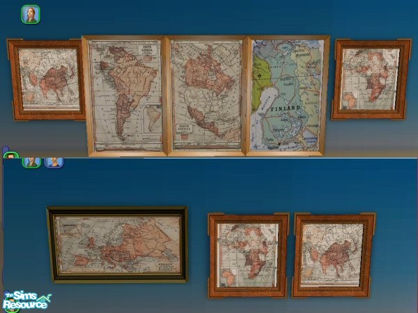 Asia, Africa, Europe, North and South America....and Finland (sorry, I was watching Monty Python). I couldn't find a nice matching Australia or Anarctica map. Sorry.
