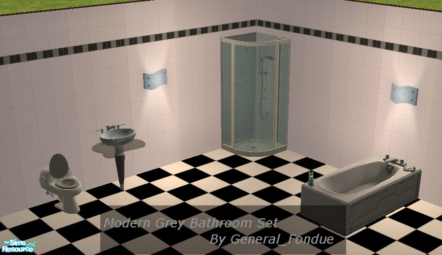 A set of Recolours of Maxis bathroom objects. Includes shower, bath, sink, toilet, wall sconce, floor and wall. Requires NO expansion packs.
