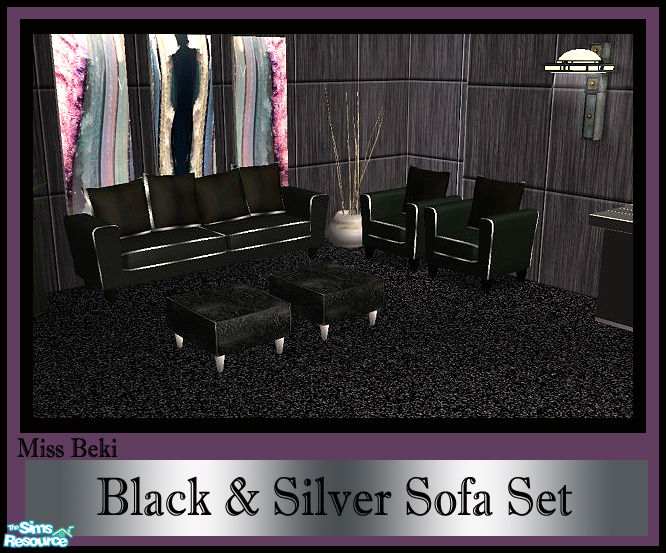 Dramatic Living Black & Silver Sofa Set. Set includes Mesh Recolours by Shtinky00 & Nanshi_Nibble @ TSR. Includes Sofa, Sofa Chair, Artwork & Wall. Hope you like it.