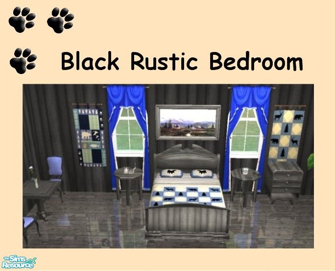 Sims 2 — Black Rustic Bedroom by MinnieMinPin — 4 files ~ Black Colonial Bed Frame, Wall, 2 Dresser Files ~ Outer Shell