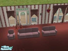 A lovely rose colored living room set with a country flair for your Sims.