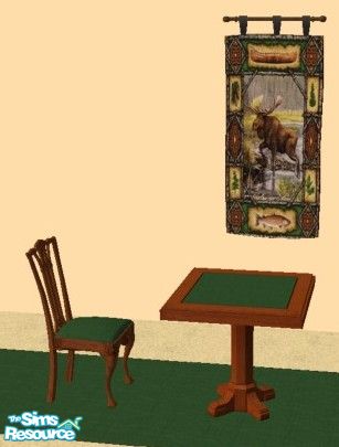 Dining Table, Rug, and Bon Appetit Chair Fabric. Dining Table is from Nightlife EP, the Chair is from Base Game and the Luxury Rug is from Glamour Life Stuff. A link for the Tapestry is under recommended items. I also made bedding that matches ~ Link is under recommended items.