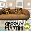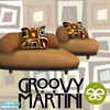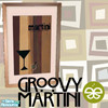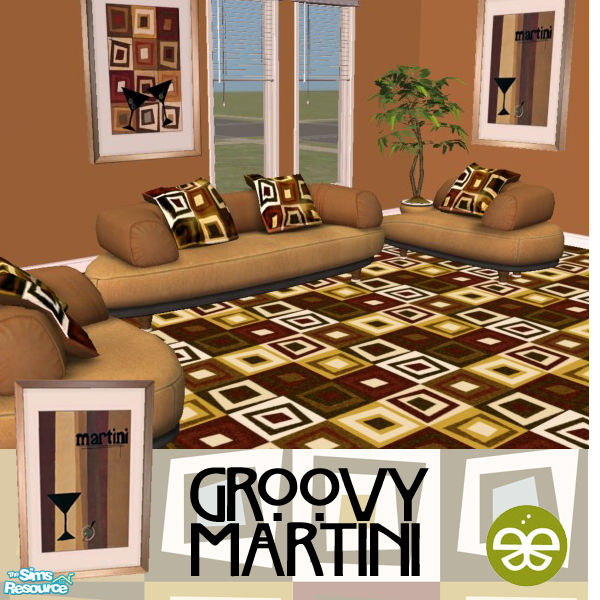 This set is based off the two painting by Celeste Peters: Groovy Martini I and Groovy Martini II. There are only 6 files: the chair and lounge back, the sofa back, the 2 pantings, a wallpaper, and a flooring. The cushions for the chairs and sofa are Maxis.