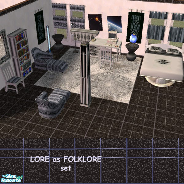 Sims 2 — LORE as FOLKLORE by lorettamouse — Black, grey, white set but still warm. Modern design for those sims who feel