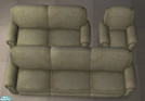 This is my neutral colored den. It includes a wall and tile floor, a fireplace, a couch, loveseat, and single seat, a coffee table, a side table, a painting, and a double/single window blind.