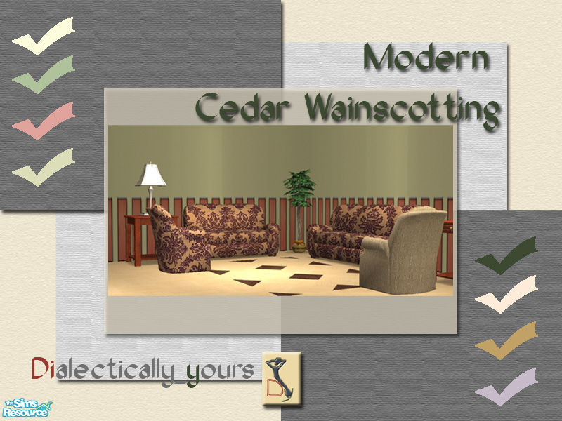 Clear, perfect cedar mouldings warm these painted panels, creating a completely new wainscotting style. Unbelievably low priced, 2s per panel, given the meticulous selection of wood and perfect installation! Sort under \'paint\'. By Dialectically_yours, Jun08.