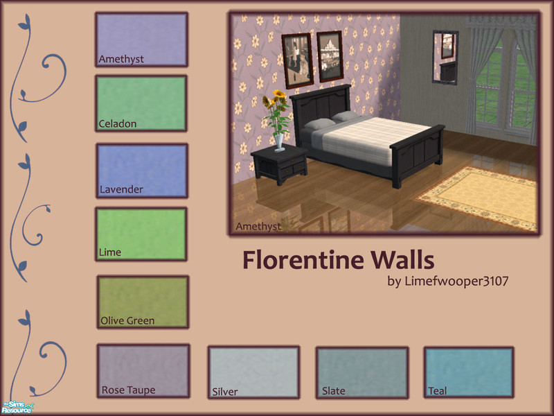 Sims 2 — Florentine Walls by Limefwooper — An elegant and modern floral set in 9 colours. I\'ve also included matching