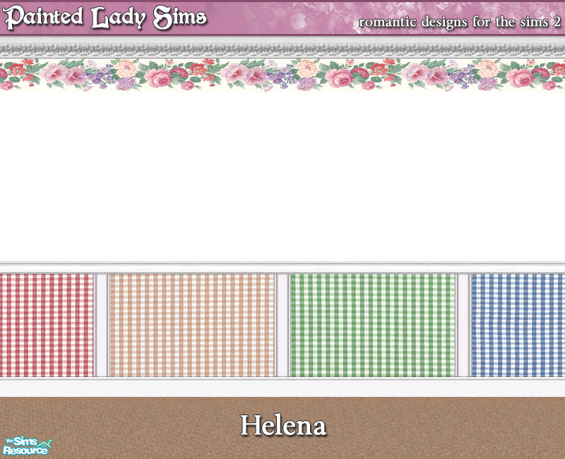 A collection of 5 wall designs featuring a damask print for use in your Sims\' homes.