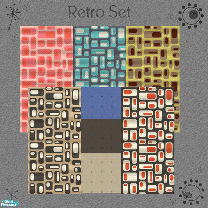 Set of 5 walls and 3 floors in a retro theme.