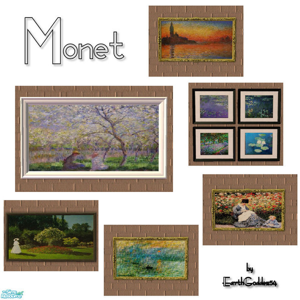 A beautiful sampling of some of Monet's best work. Set includes Monet's Sunset, Houses of Parliament, Camille Monet & child, a selection of his Water Lilies, Garden at Giverny-Irises, Woman in the Garden, and Springtime. Thanks to Quengel for a wonderful request. :) Enjoy!
