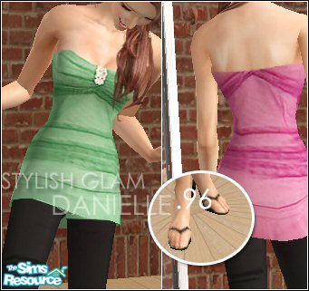 A stylish set of 2 whole outfits. Colors come in pink and green. Mesh by Sim Chic. It's the last one in the the 1rst row. Enjoy!