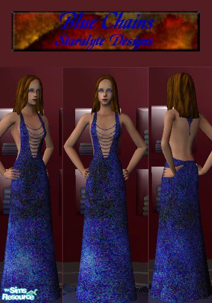 All eyes will turn when they see this stunning low low cut sparkle blue dress held together by delicate blue chains.