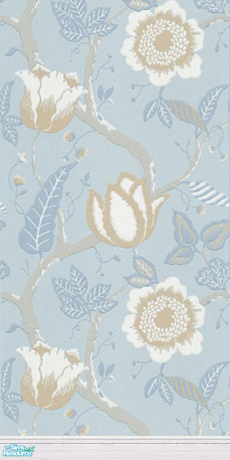 Set of walls and floors with duck egg blue, beige and white floral pattern. Thanks to Cailca for the wallpaper templates,