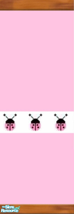 Pink ladybug wallpaper on pink paint with dark wood molding. My first wall. :)