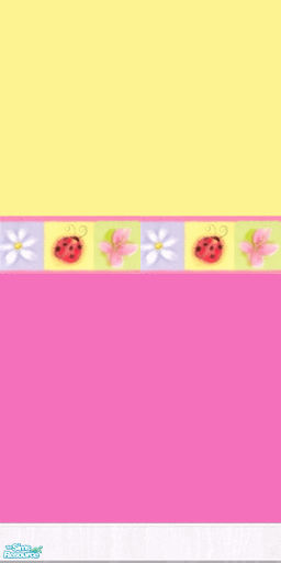 A bright yellow and pink wall with a ladybird boarder.