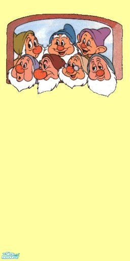 A sunny yellow wall with the dwarves for the Snow White BR.