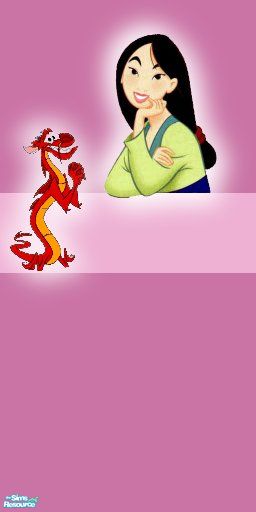 A pretty pink wall featuring Mulan and Mushu for the Mulan bedroom