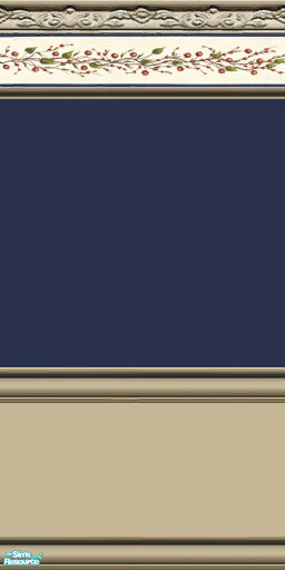 Set of 3 walls for your home. Royal blue paint with cherry wallpaper trim. Carved wooden artchitrave. Light wooden panel and blue trim.