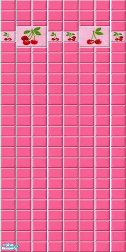Pink wall tiles with a large cherry decor for your sims\' favourite bathroom. Decorative tiles based on a texture provided by frogger1617 for texture challenge 56.