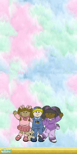 Pink, blue, mint wallpaper with Cabbage Patches for your Sims child or baby. Comes with teal or yellow rails.