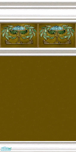 Emerald, and mint greens form stylized leaves for an aquamarine blue flower with a coppery ground in these ArtNouveau tiles. All dressed in Cottage white mouldings to set off the bold colors. Find matching jsf2TileNouveau1 and jsf2CarpetNouveau1 in Floors to complete your room.