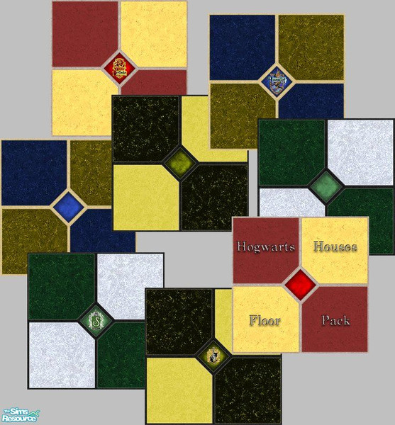Sims 2 — Hogwarts Houses Floor Pack by dollsalways — Eight tiles representing each of the four Hogwarts Houses in their