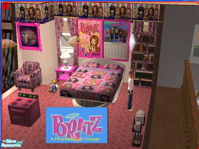 A cute and adorable bedroom for your young little sims...do enjoy this collection! It includes, The Bratz curtains, poster,calander, bed, lamp, table and bookcase!