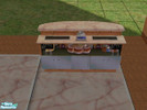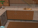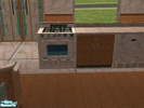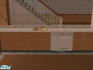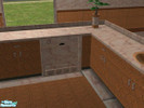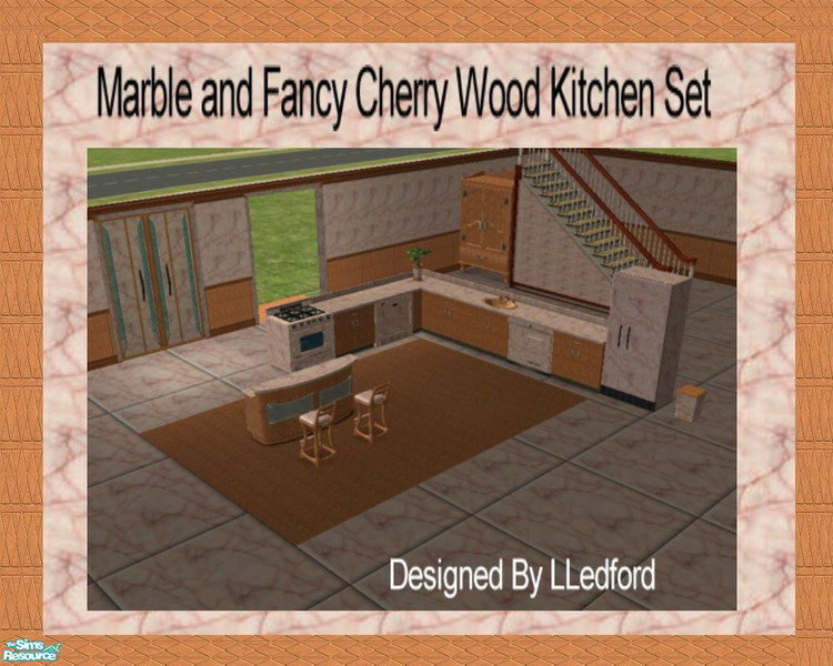 Marble and Fancy Cherry Wood Kitchen Set. The complete set includes 2 floors wood and tile, 1 wall, 1 door and 1 door arch, 2 Refrigerators, 2 Stoves, a trash compactor, dishwasher, bar, bar stools, cabinets, stairs, trash can, armoire, and a bonsai tree. Designed by LLedford.