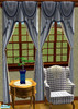 Charming and quaint, complete with doilies for the tables, back of the chair and a handmade quilt for the bed. Bed, bookcase, chair and bedside tables all made from matching honey colored wood. The lady of the house,