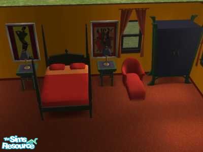 Sims 2 — Afrikka Bedroom Set by Tammi — Colorful bedroom set for your colorful Sims in a rainbow of reds, rusts, yellows,