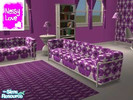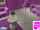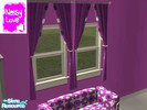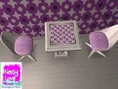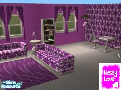 Made by request. A purple and metallic retro room. Incorporates - sofa, end table, lamps, chair, chess table, bookshelf, curtain, wall (2) floor (2). Please enjoy, Nessy Love x.