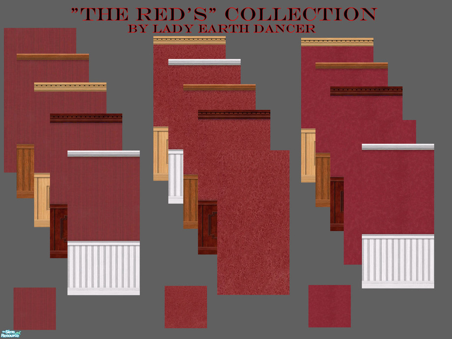 A collection of 15 walls and 3 floors..3 shades of red, done in paint and also with different colored wainscoting..You can never have to many red walls..Please enjoy!
