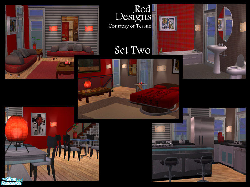 Sims 2 — Red Design Set Two by tessnz — Create a stylish modern home with a hint of red. I have broken these into two