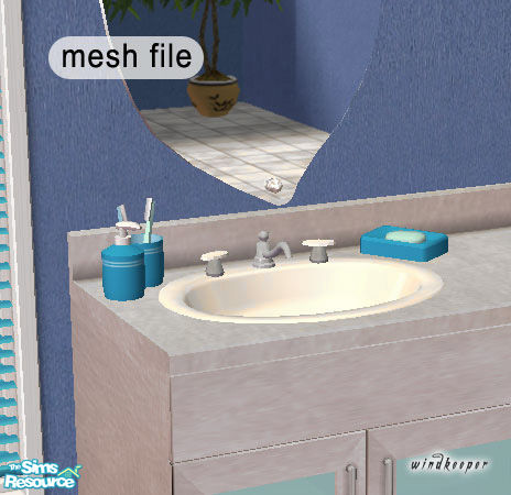 - MASTER MESH - Place it on a countertop with a sink. Decorative only. If you want to create a new color for bathroom accessories, this is the only file you need to recolor. All other files are linked to this one.