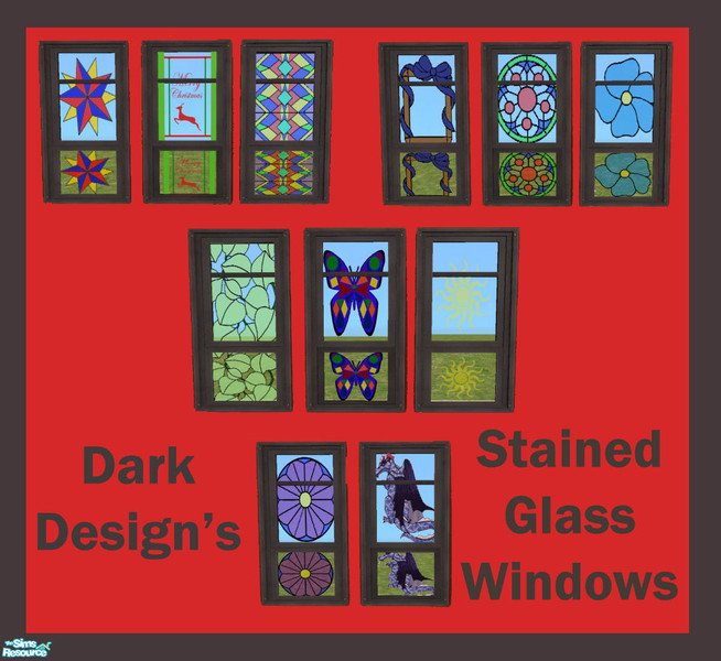 Thanks to Numenor's tutorial on MTS2, Dark Design has made some stained glass windows for your sims to enjoy!