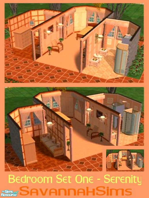 Enjoy a sense of calm with the Serenity Bedroom Set, including it's very own en-suite bathroom and dressing room! Everything matches, enabling your Sims to feel calm and content with the flow of these three attached rooms. The entire set contains 26 items, 3 walls and 3 floors. Happy Simming! TSRAA Creation.
