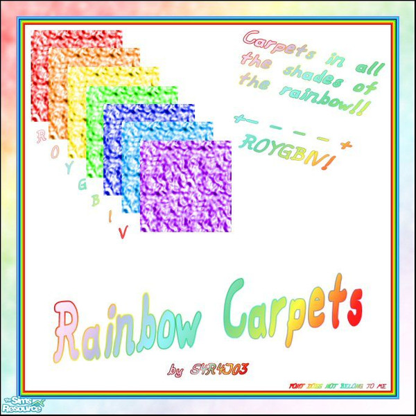 Sims 2 — Rainbow Carpets by S4R4J03 — A series of soft, thick carpets in all the colors of the rainbow. ROYGBIV!