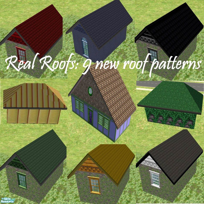 9 new roof patterns! Just put the files in your downloads folder and check your build roof pattern folder! :D Shingles to match the shuttered windows & Maxis shingled wall, plus, my favorite: an ivy-covered one! And a nomad pattern just for fun. TSRAA.